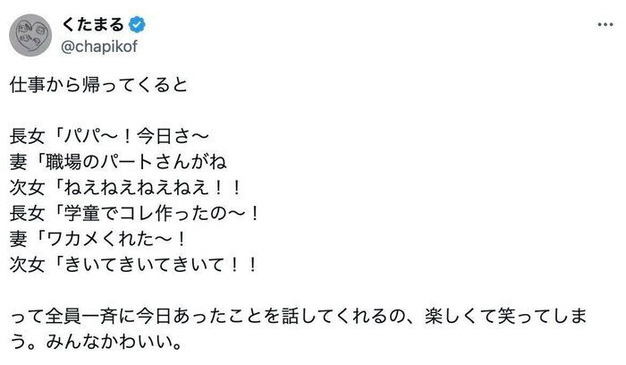 まるで聖徳太子!?仕事から帰ってきた瞬間、妻・長女・次女に一斉に話しかけられたパパ!「幸せな瞬間」と12万人が羨望の眼差し