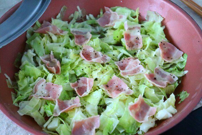 疲れて何もつくりたくない日に超絶オススメ!「キャベツとベーコンの簡単フライパン蒸し」