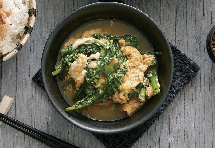 季節の野菜がおいしく味わえるさっと煮♪春菊の卵とじ
