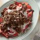 濃厚な牛肉をにんにく風味の塩味で!生トマトの牛肉ソテーがけ