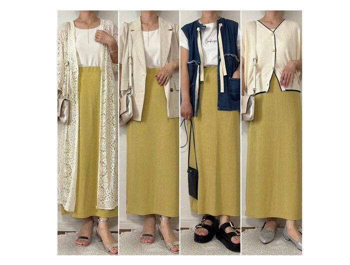 【しまむら】1,089円イエローの差し色ナロースカートで地味コーデから脱却!派手すぎないけどパッと華やかに