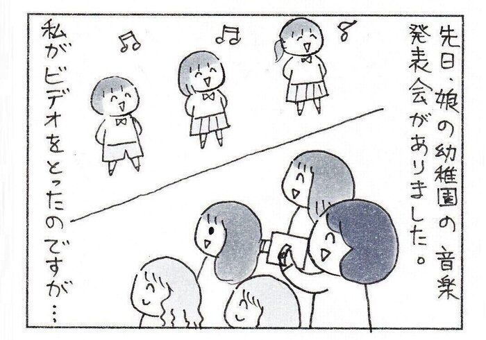 娘の発表会でビデオ撮影がうまくいかなかったママ。娘の「見えにくーい」に対するパパの返しがやさしくて感動!