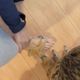 飼い主さんの足をつかんで遊ぶフクロウ。「気遣う優しさ」と「あどけなく喜ぶ姿」がたまらなくかわいい!