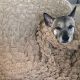 市役所の窓口で笑われた犬。飼い主がカートを見ると、網目の向こう側で予想外の角度からこちらを見ていた