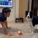 飼い主の「バウ」に合わせて伏せる犬。息がピッタリに遊ぶ様子が「飼い主を友だちの犬」と思っていそう