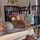 器用にドールハウスに入ってくつろぐにゃんこ。「家賃払って〜」と言いつつ優しく見守る娘とのやりとりにほっこりライフスタイル