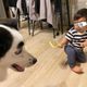 ブラッシングをやる気満々の1歳息子と不安そうなボーダーコリー。そのやり取りに「どっちも可愛い」の声