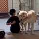 1.9万人が「いいね」した光景!なでてほしい2頭のウルフドッグからすり寄られる四女に「羨ましい」の声