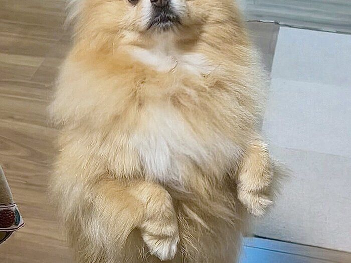 「うれしいな」「こっち見て」飼い主さんに気持ちを伝えたい!背伸びを頑張るポメラニアンがあいくるしい